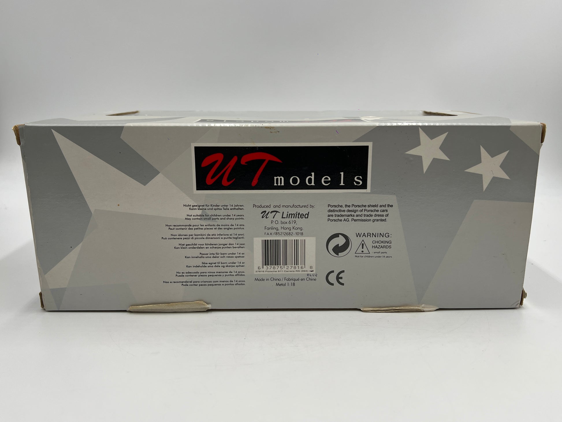 UT Models 1/18 Scale Rare Color Porsche 911 Carrera RS 993 Riviera Blue W/Box VHTF Box Not Perfect