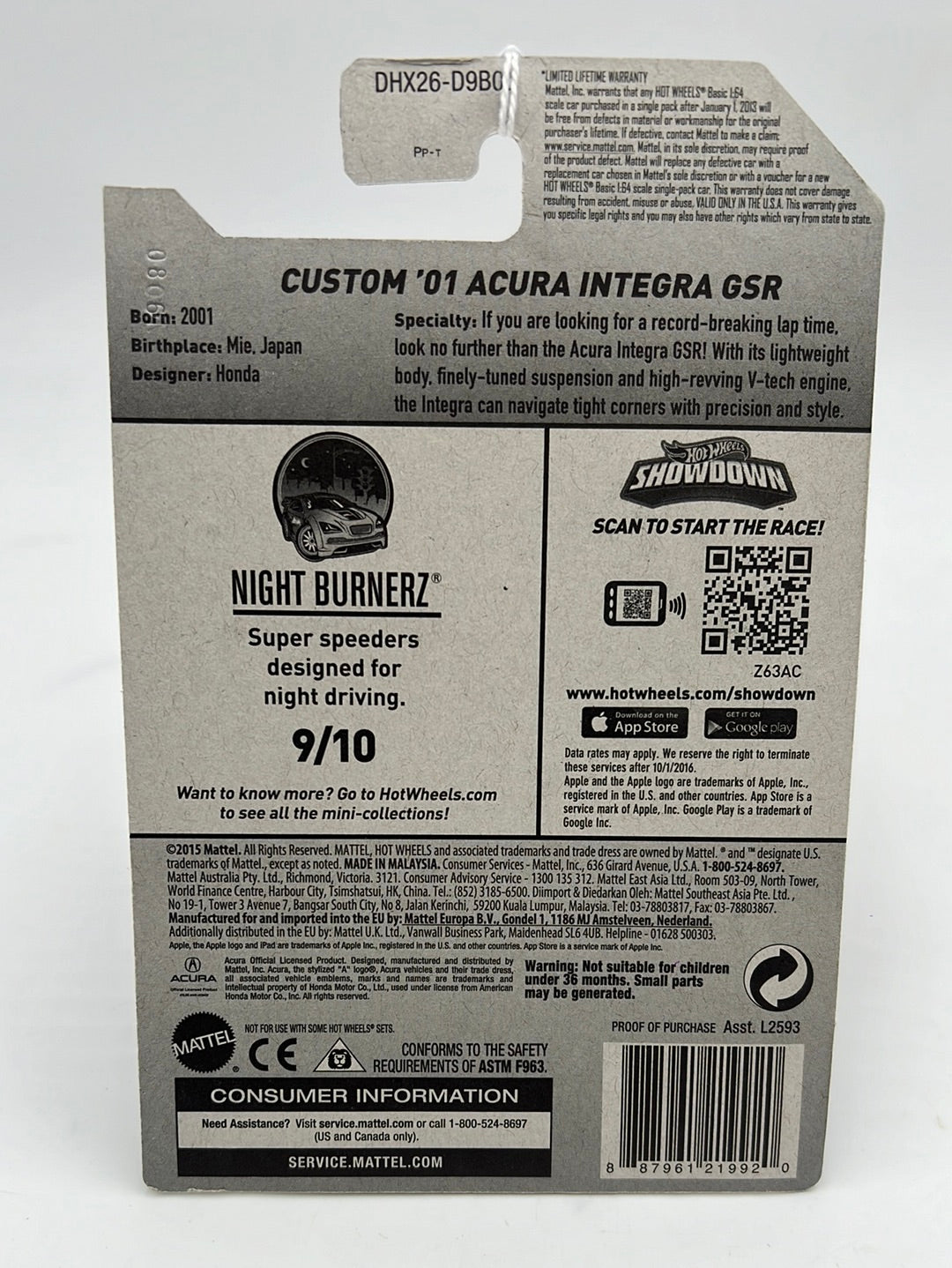 Hot Wheels 2016 Nightburnerz #89 Custom 01 Acura Integra GSR White 89/250 105H