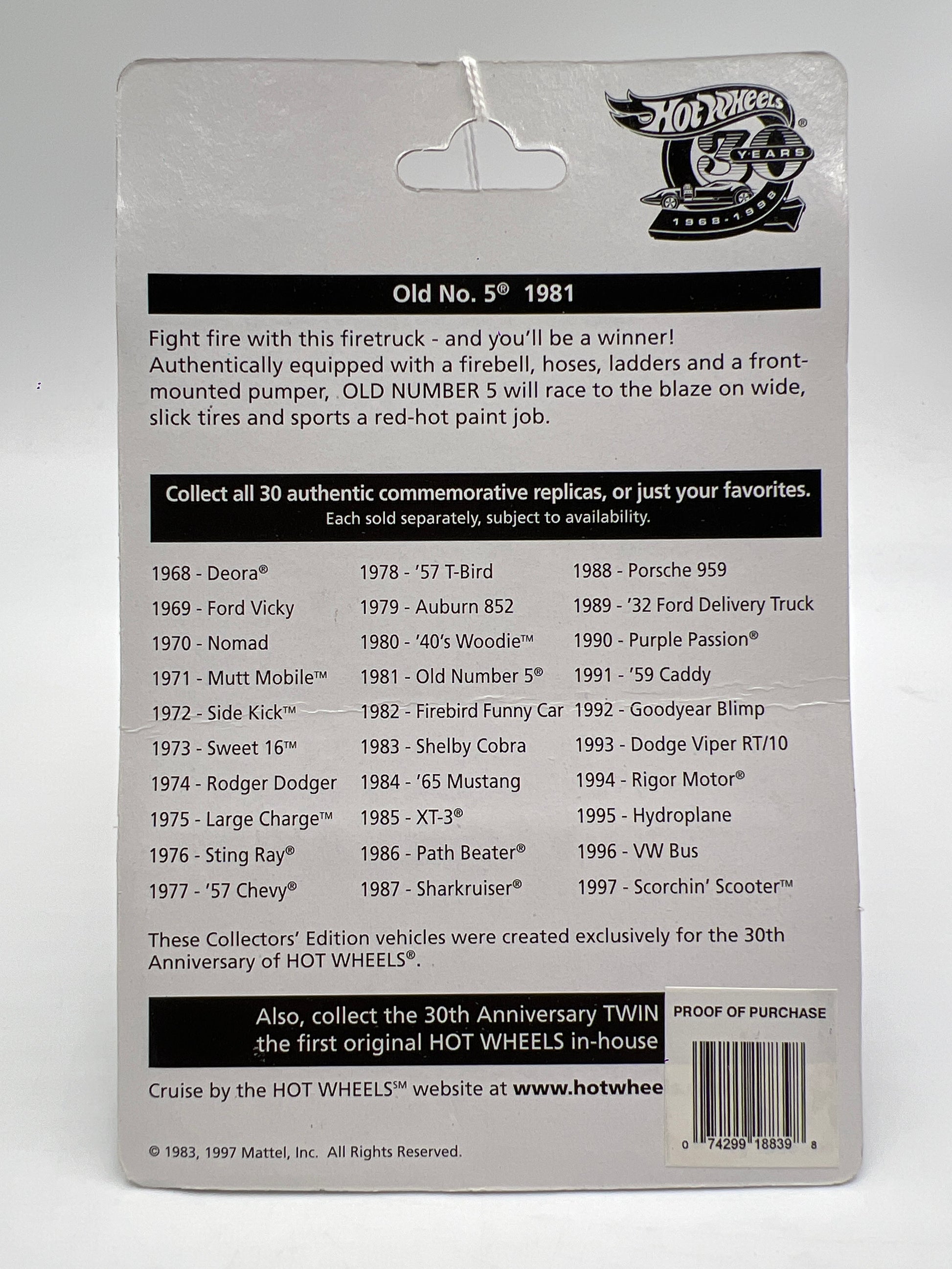 Hot Wheels 30 Years 1981 Authentic Commemorative Replica Old Number 5 Red