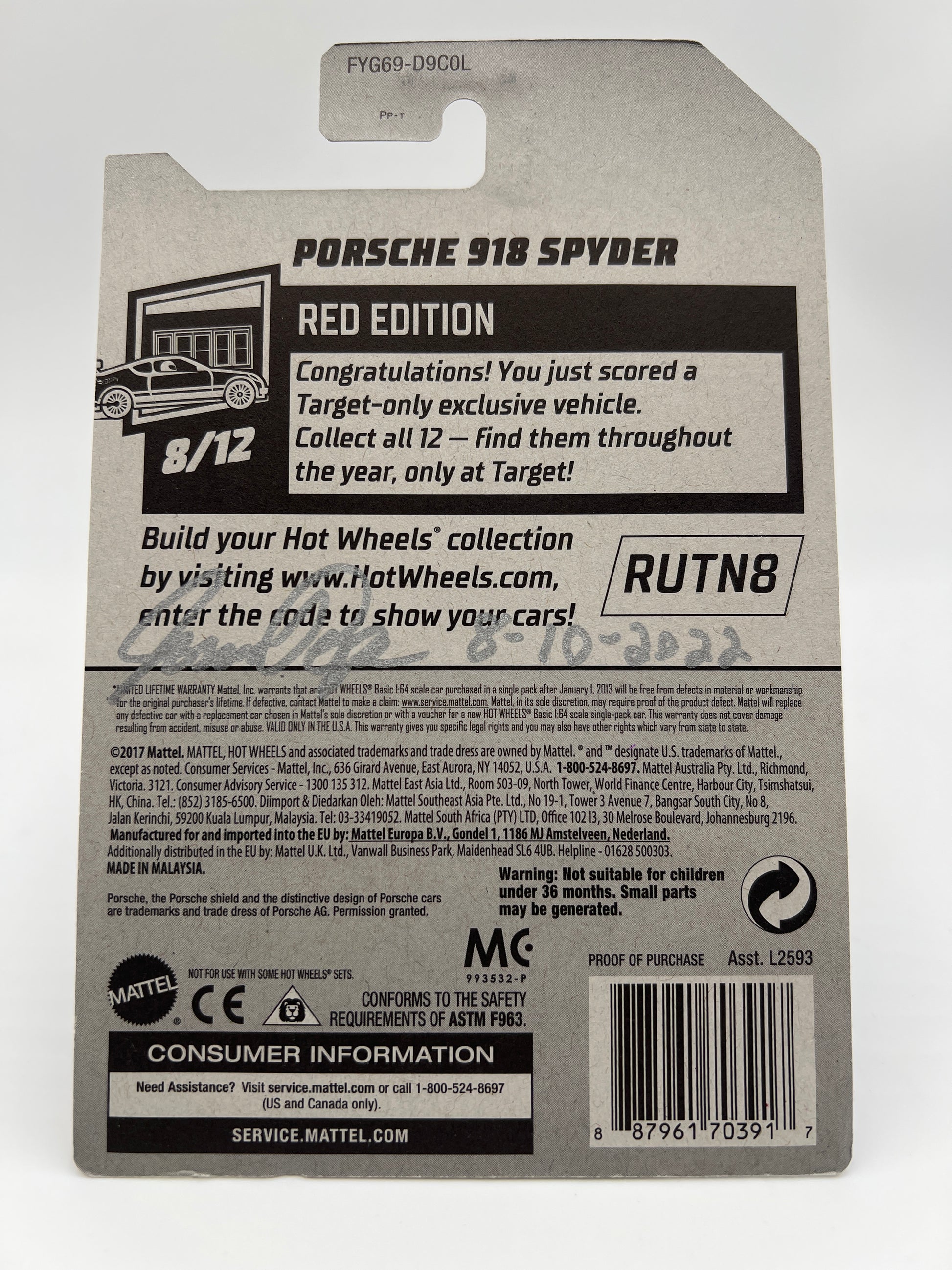 Hot Wheels Red Edition Porsche 918 Spyder White Wheel Swap Custom On Card W/Protector