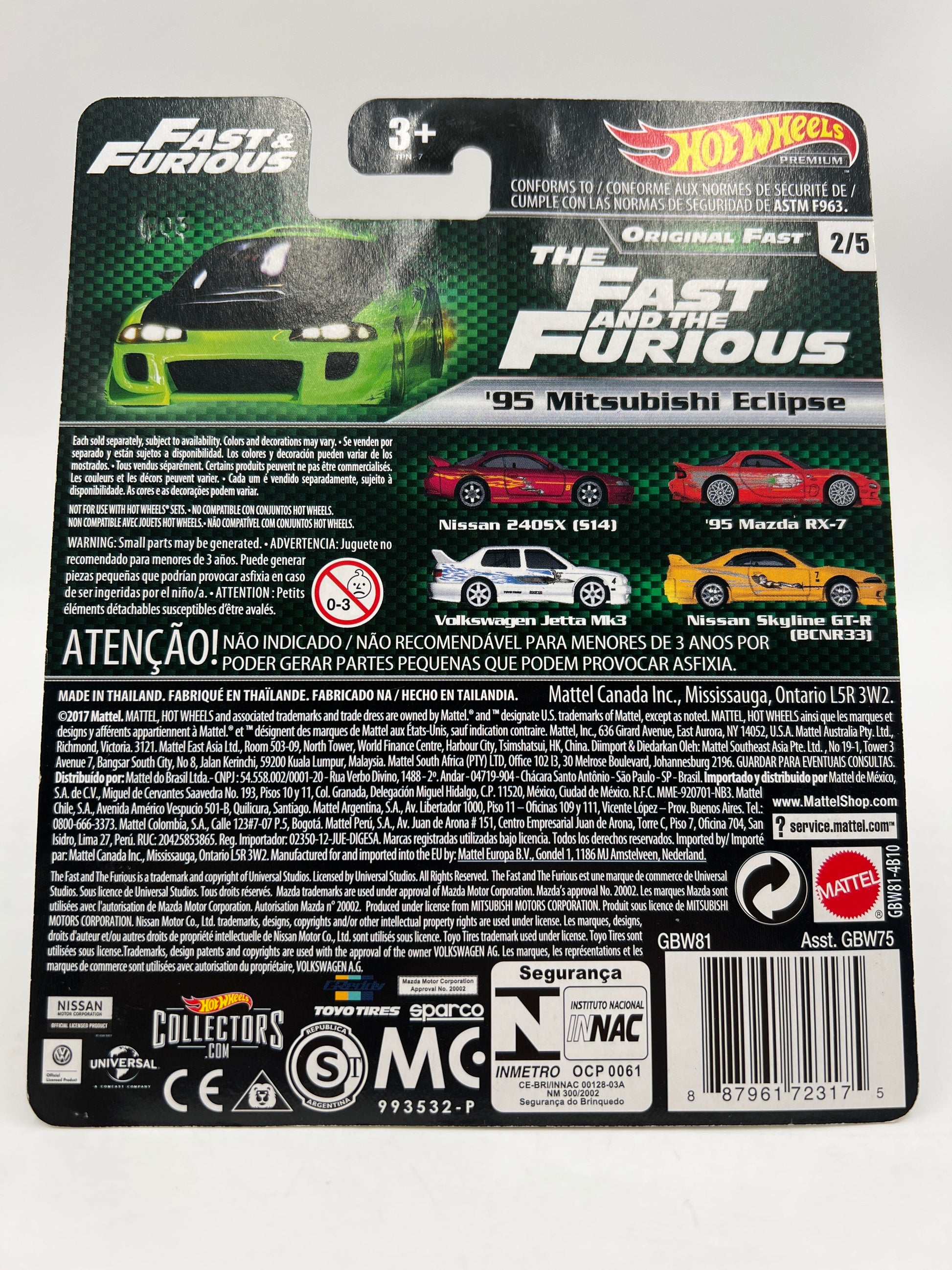 Hot Wheels Fast & Furious Original Fast #2 95 Mitsubishi Eclipse Green W/Protector