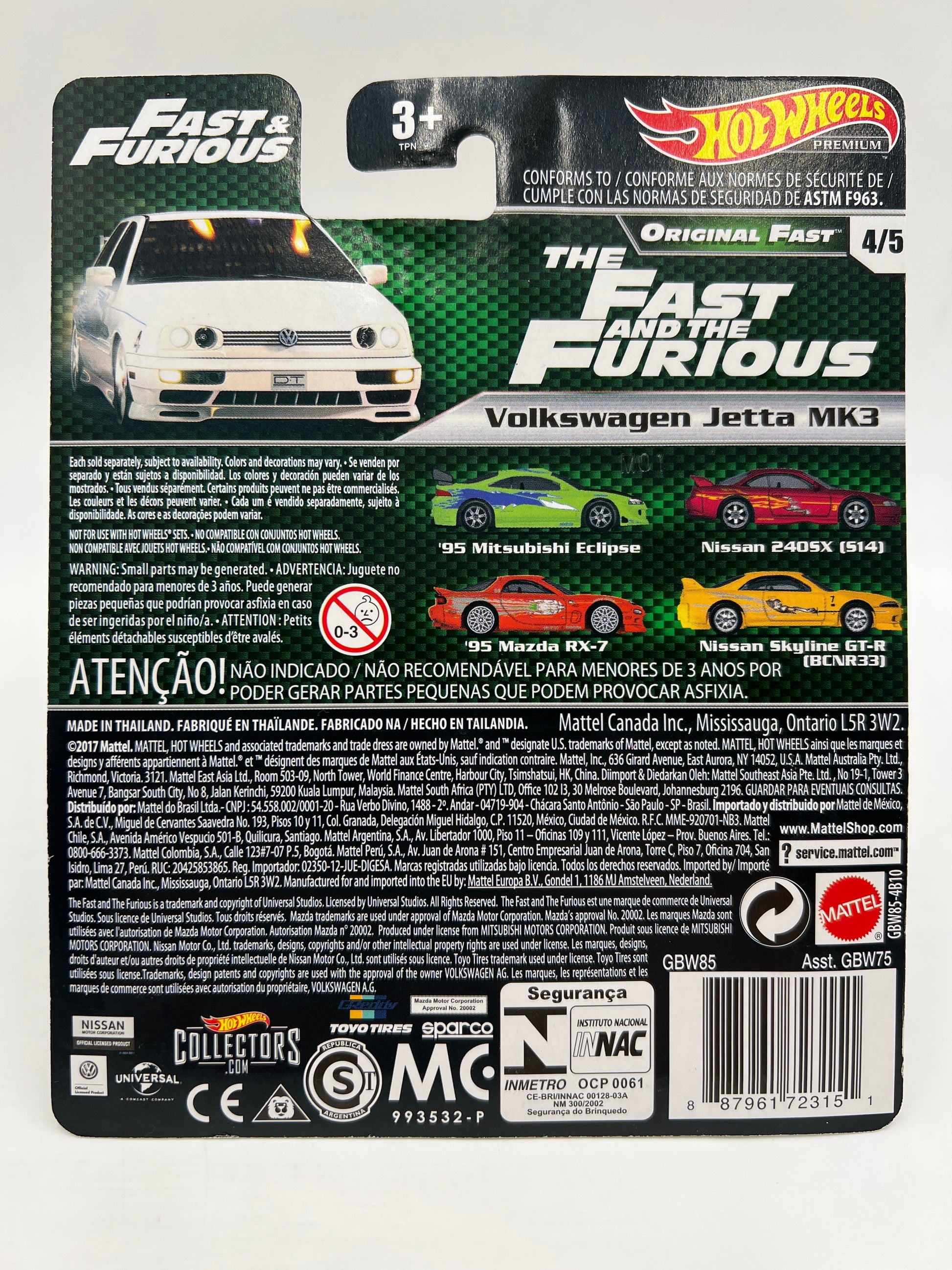 Hot Wheels Premium Fast & Furious Original Fast #4 Volkswagen Jetta MK3 White W/Protector
