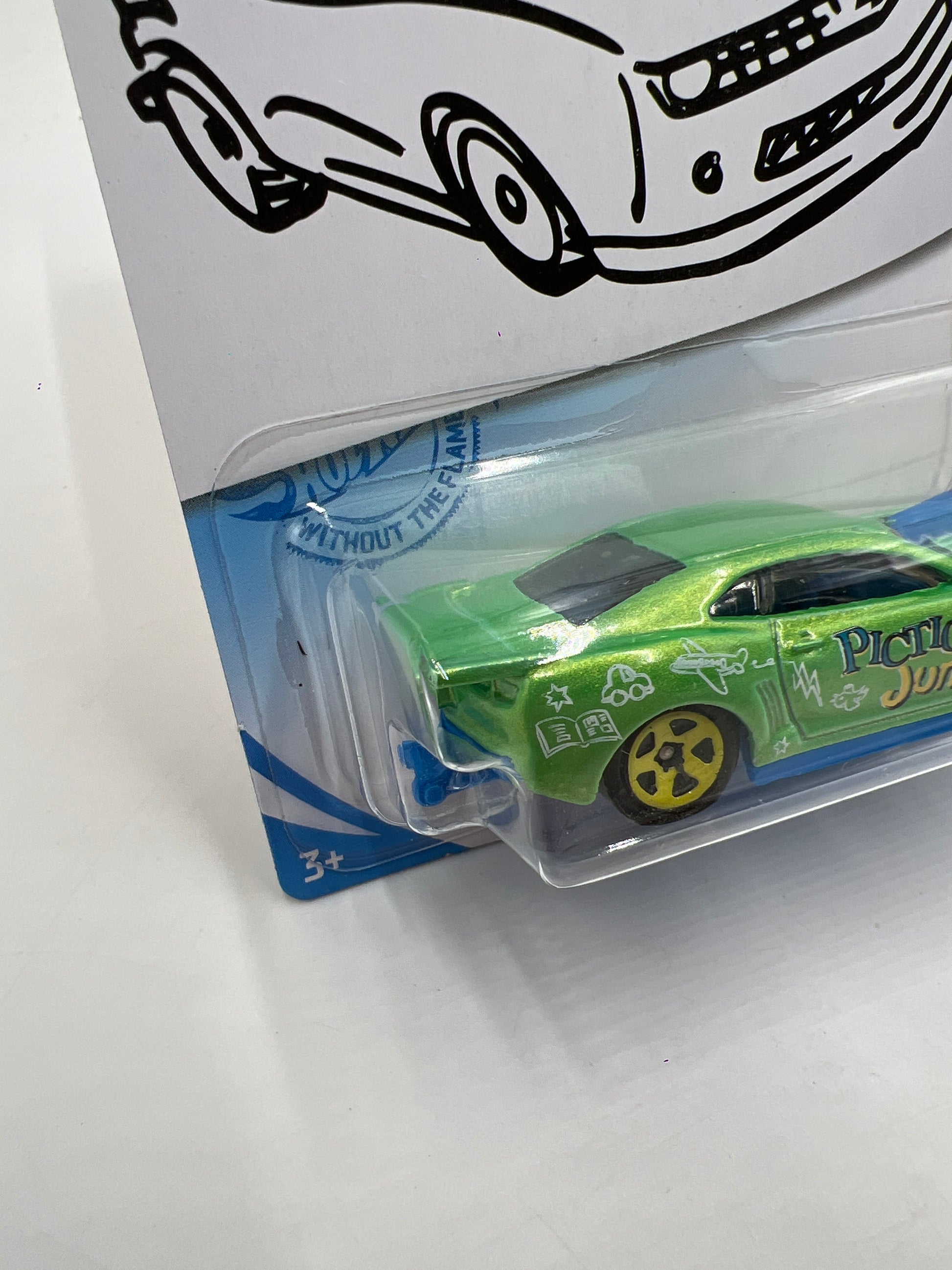 2019 Hot Wheels Kroger Exclusive #149 10 Pro Stock Camaro Green/Yellow Pictionary Sketch Card W/Protectors Cracked Blisters