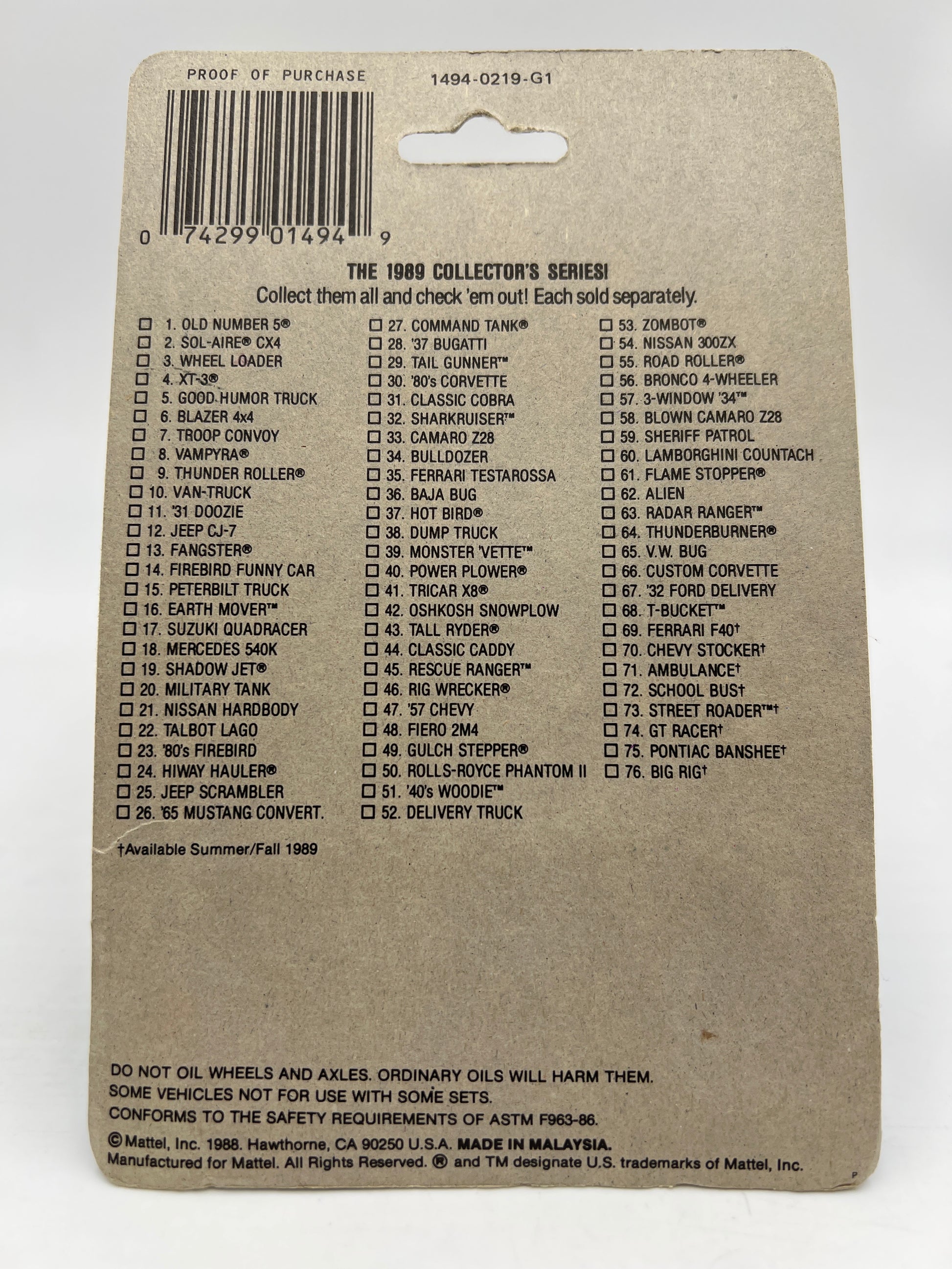 Hot Wheels Original 1988 Speed Fleet #1494 Sol-Aire CX4 Black/Magenta W/Protector