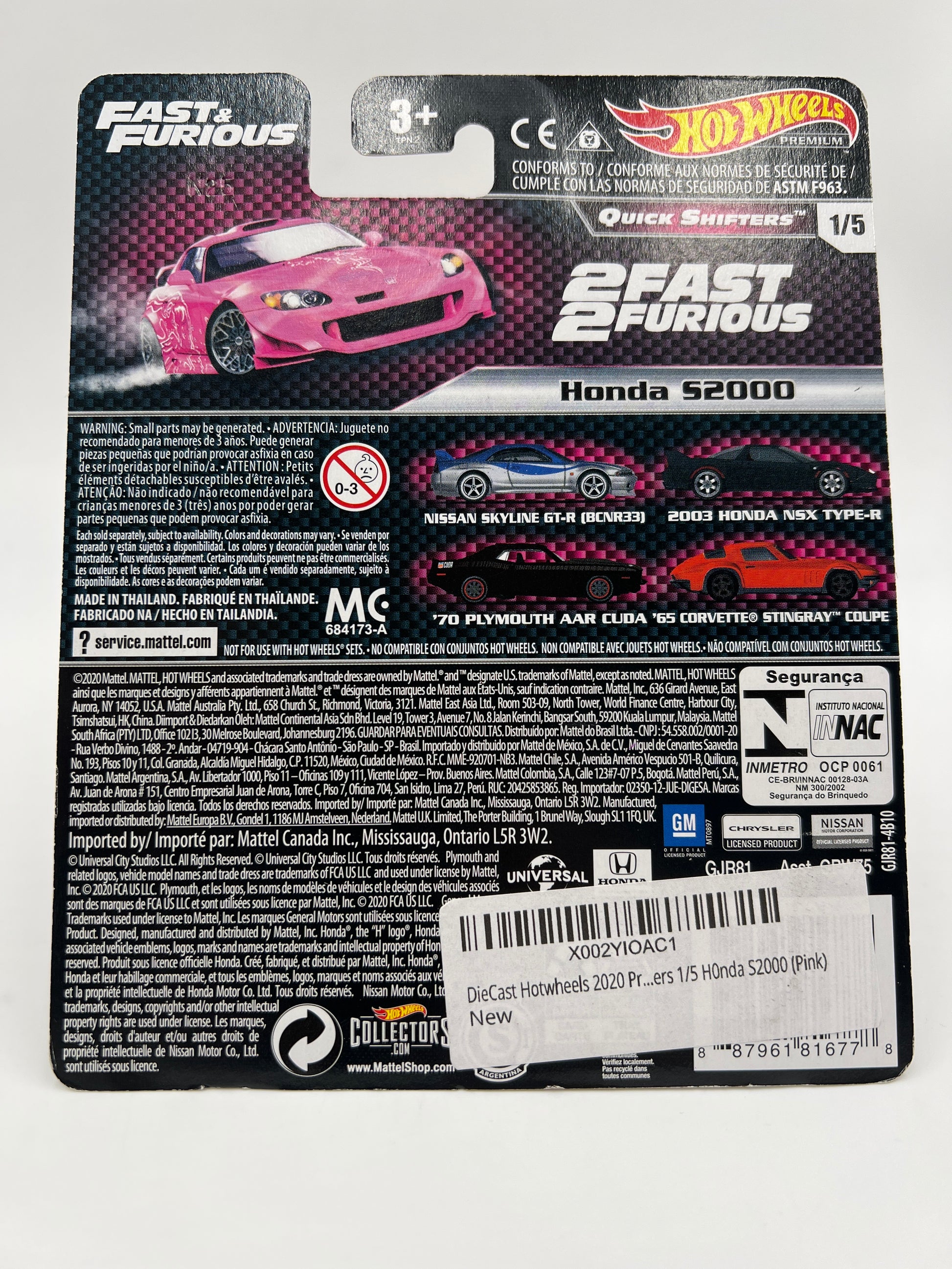 Hot Wheels Premium Fast & Furious Quick Shifters #1 Honda S2000 Pink W/Protector Cracked Blister