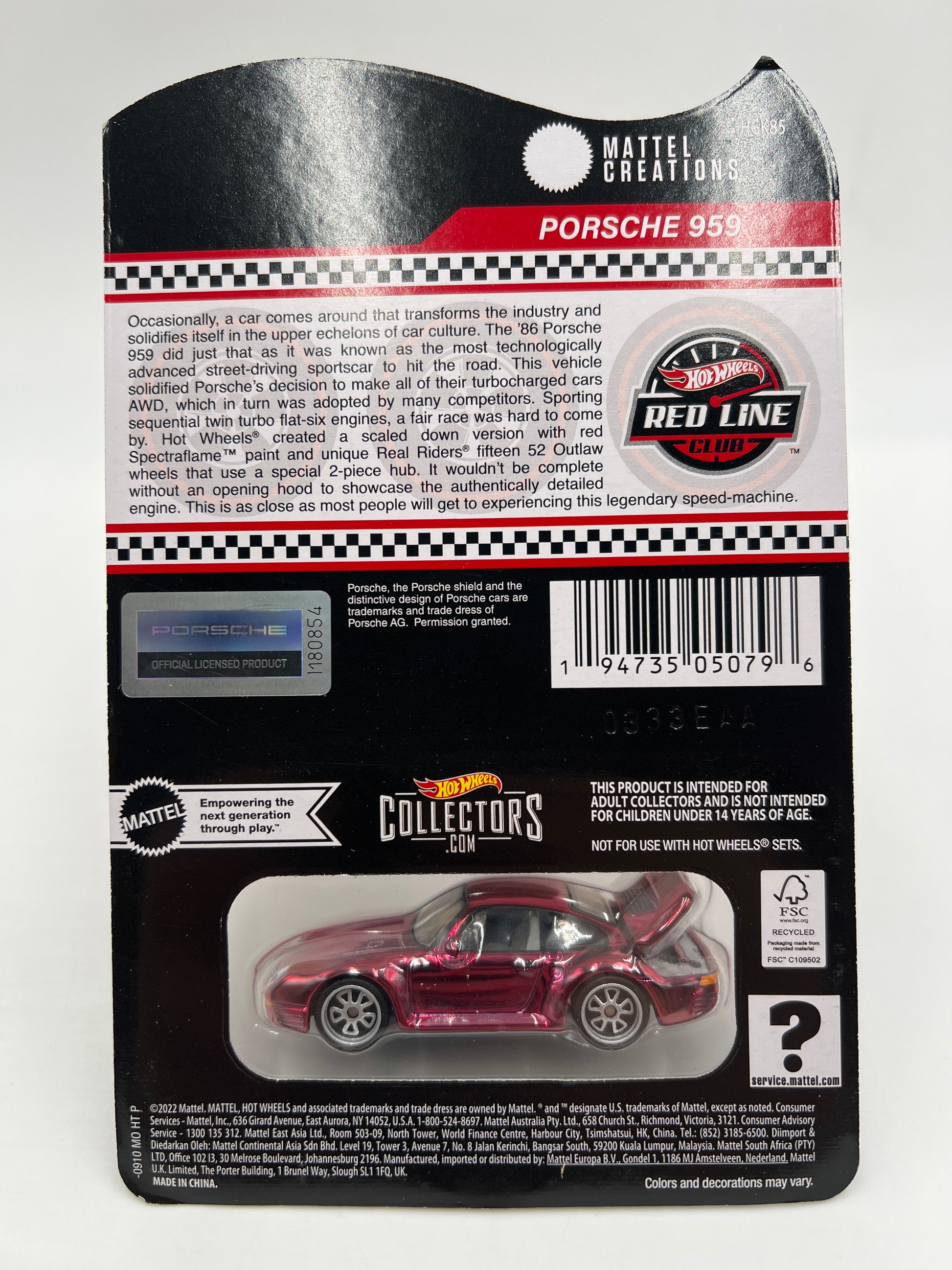 Hot Wheels RLC Porsche 959 Red W/Protector