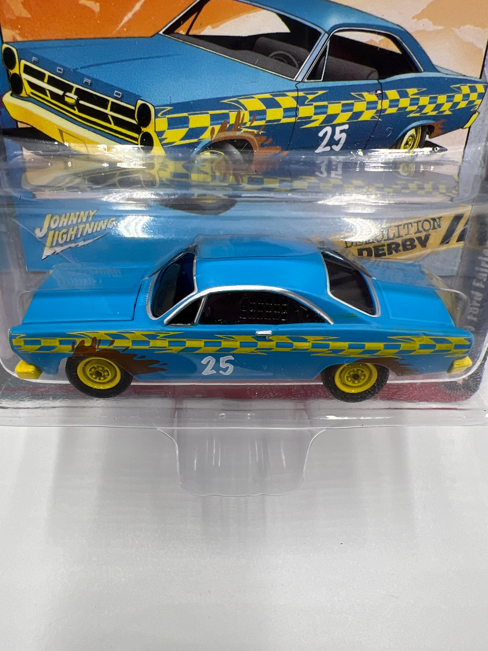 Johnny Lightning Street Freaks Demolition Derby Release 4 Version B 1967 Ford Fairlane Stock Car #25 Flat Rattlecan Bright Blue 232C