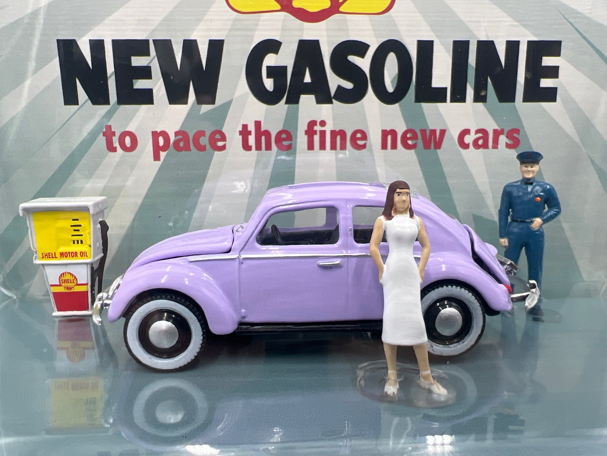 M2 Machines Diorama Shell 1957 VW Beetle Deluxe European Model Purple R09 197H