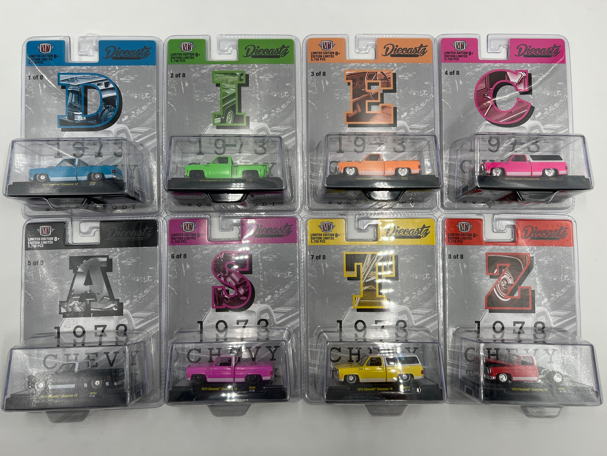 M2 Machines Diecastz 1973 Chevy Trucks Full Set Of 8 RZ02