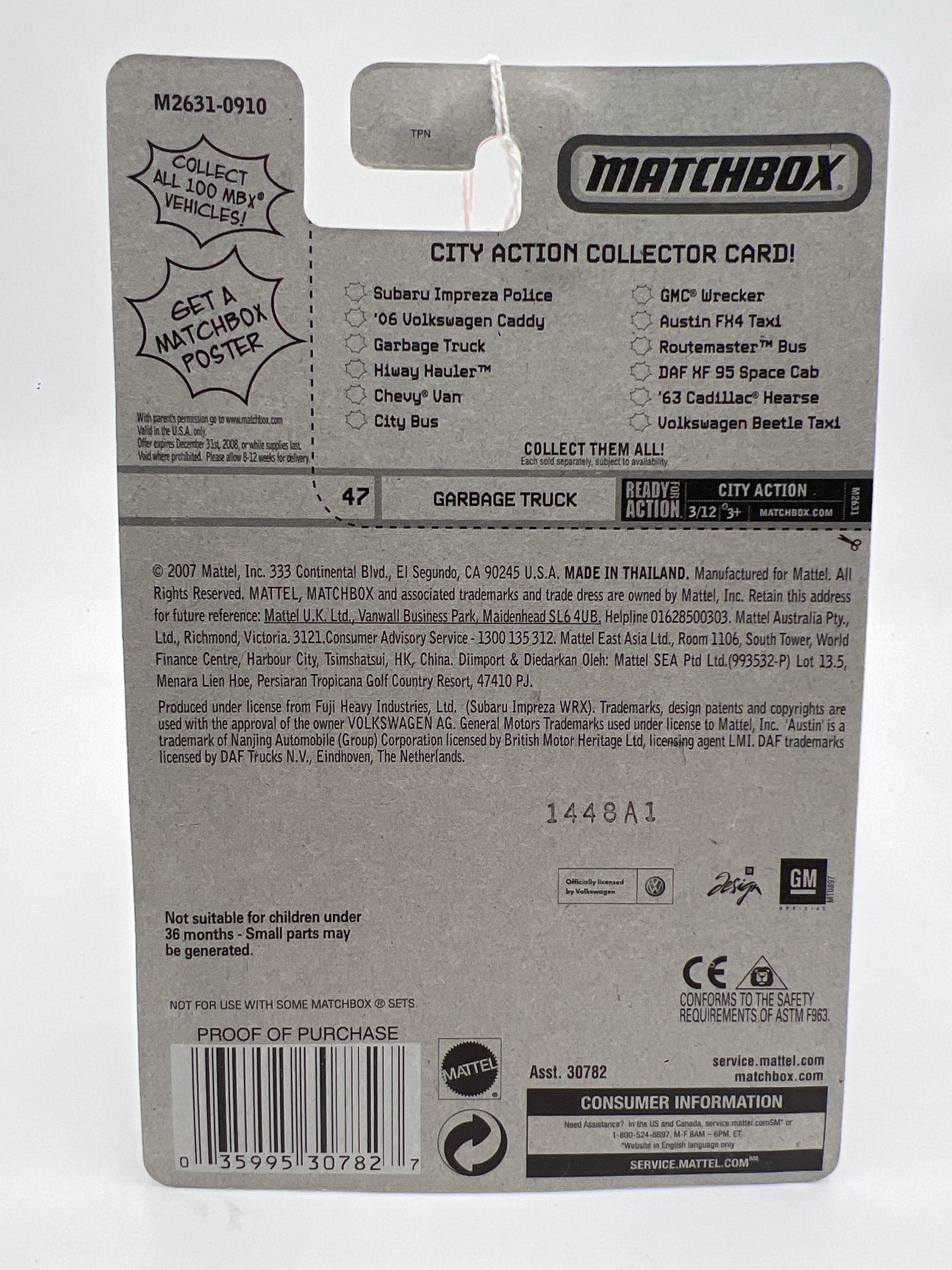 Matchbox #47 City Action Garbage Truck White 209B