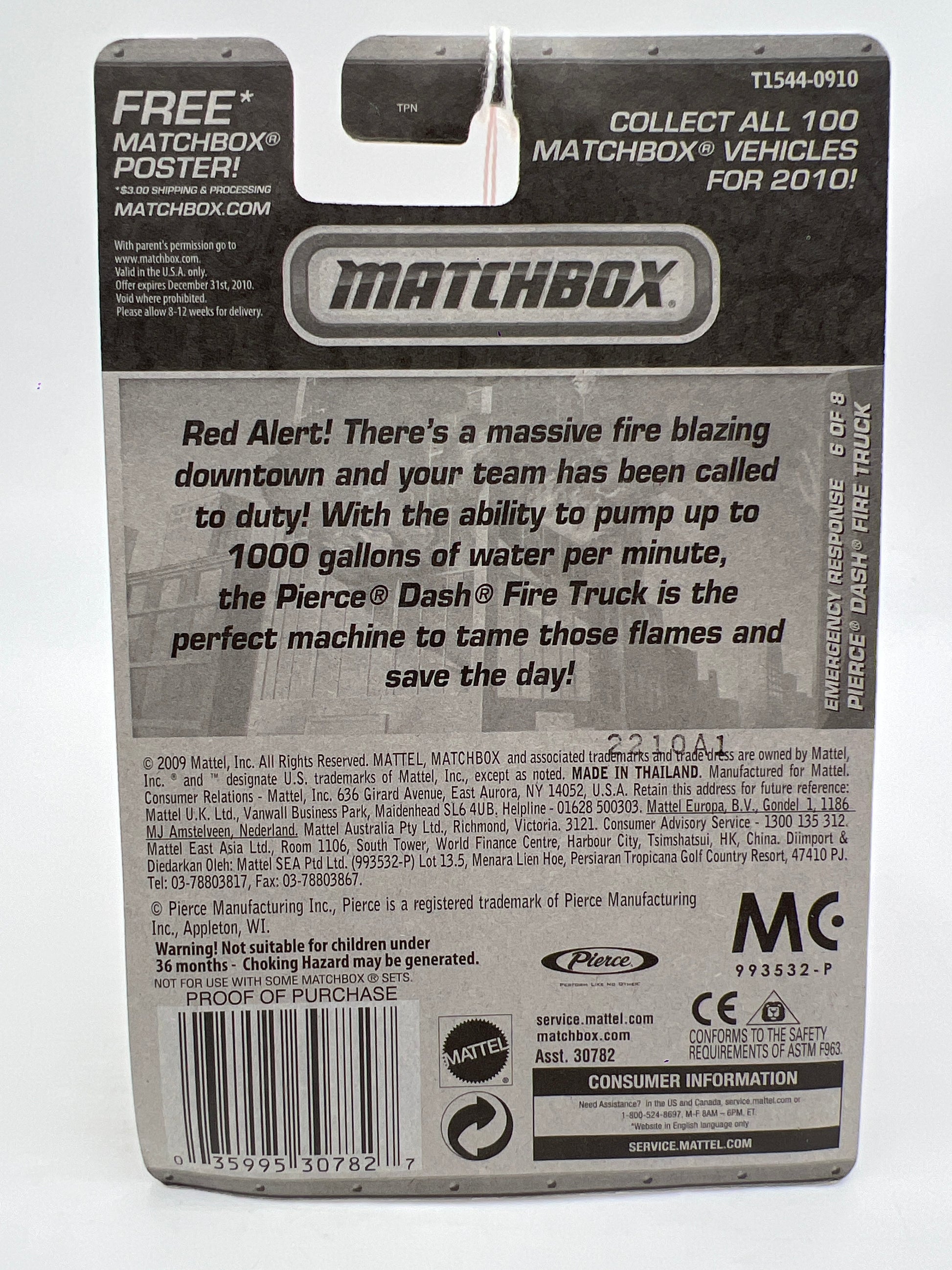 Matchbox Emergency Response #56 Pierce Dash Fire Truck Yellow/Black 216J