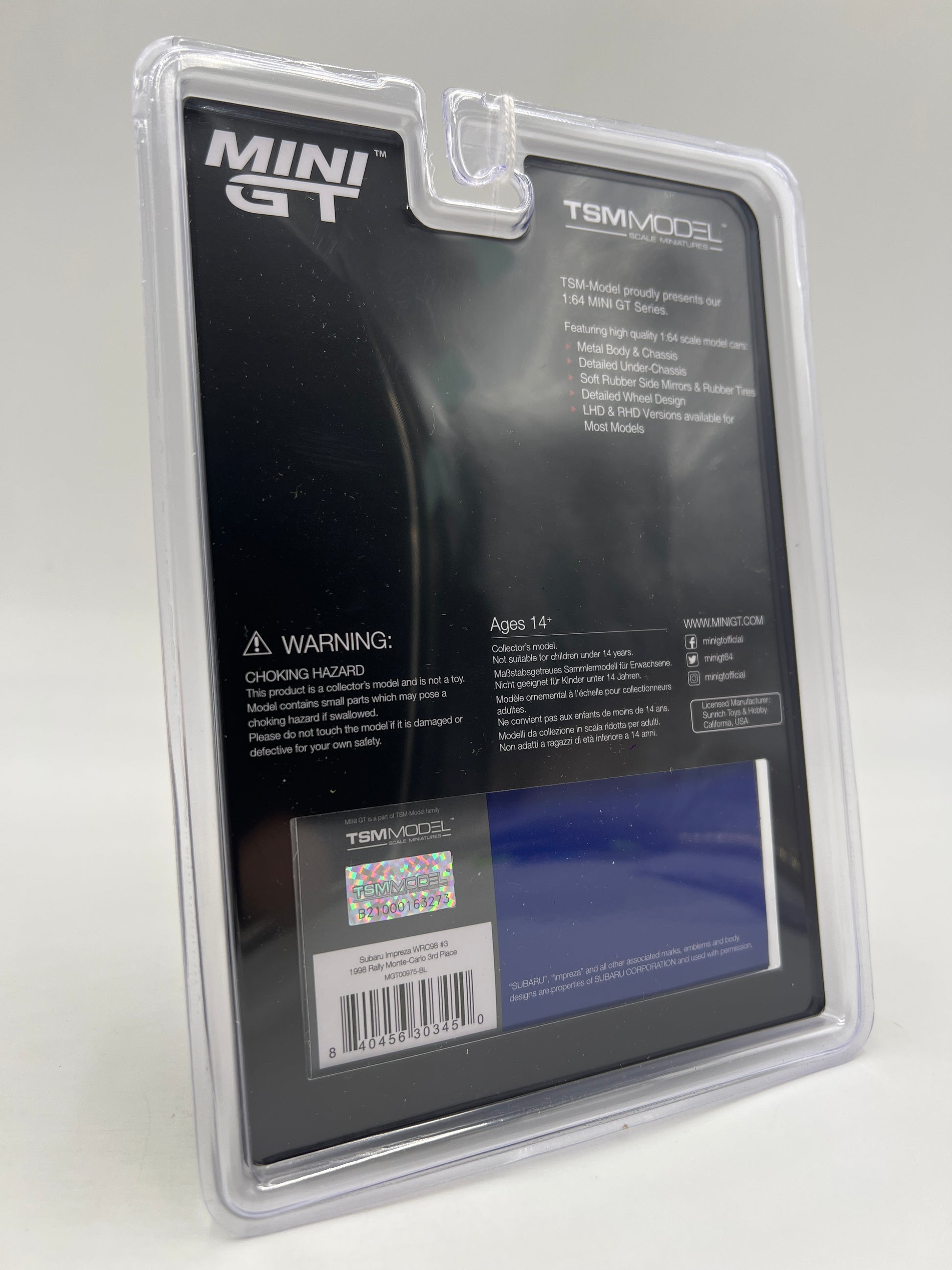 Mini GT #975 Subaru Impreza WRC98 #3 1998 Rally Monte-Carlo 3rd Place Blue 235A