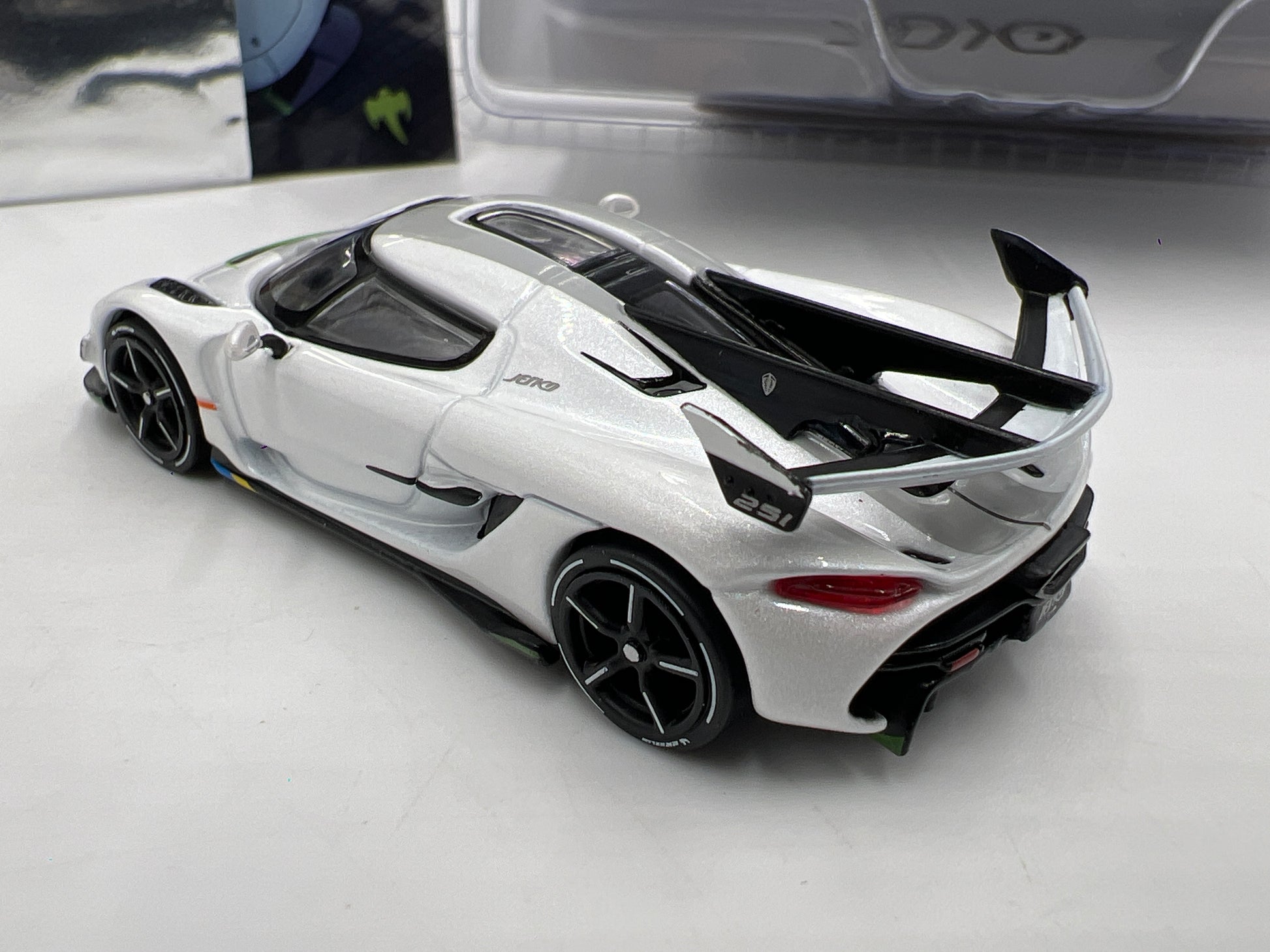 Tarmac Works Mijo Exclusives Koenigsegg Jesko Attack White W/Trading Cards Open Pack