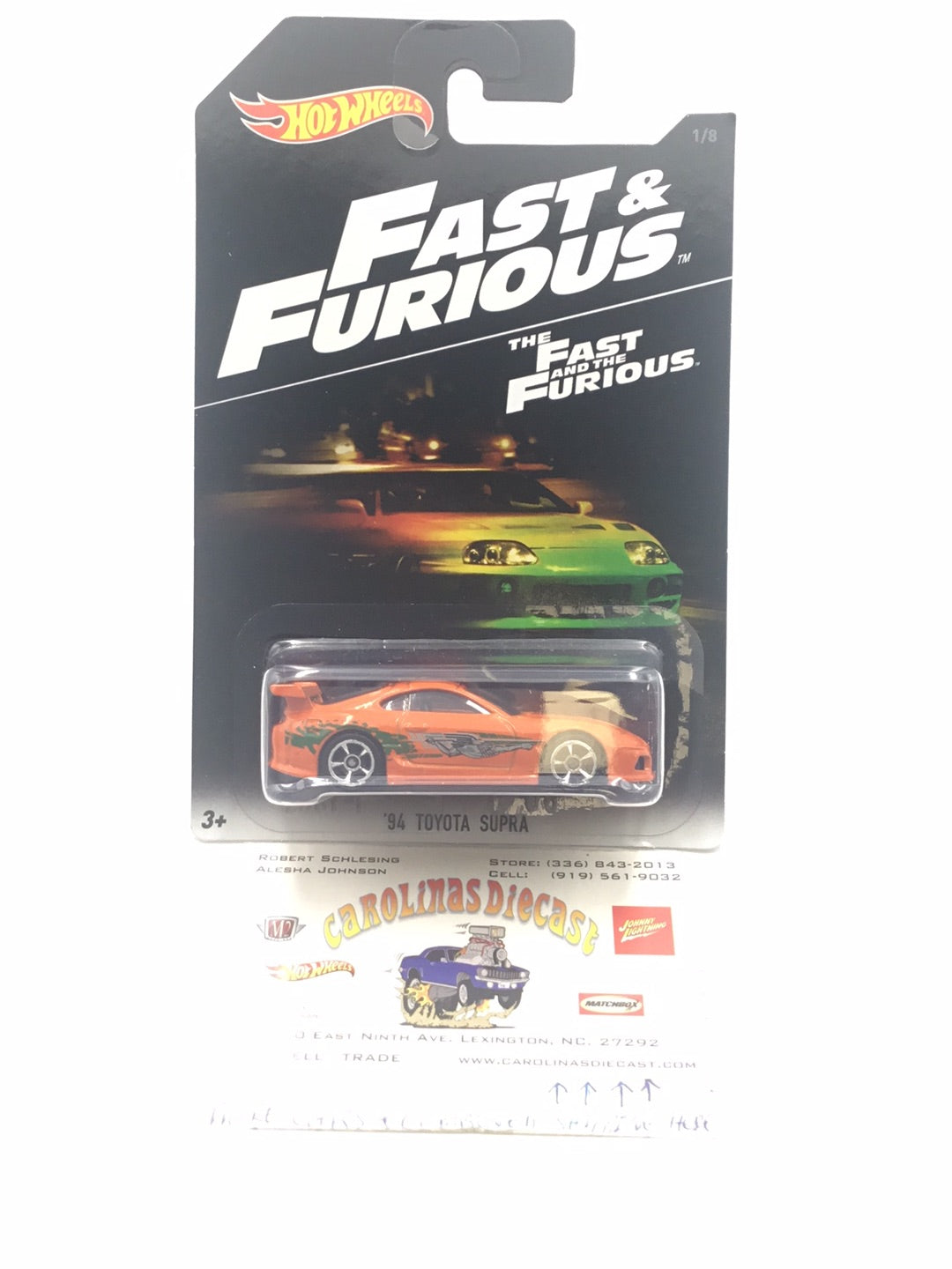Hot wheels fast and furious 94 Toyota supra orange #1 1/8 W/Protector VHTF