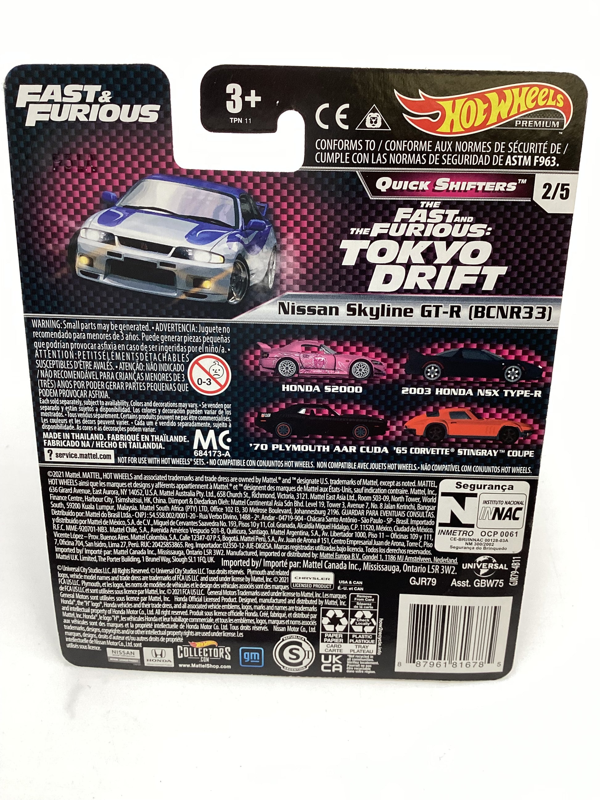 Hot Wheels Fast & Furious Quick Shifters #2 Nissan Skyline GT-R BCNR33 W/Protector