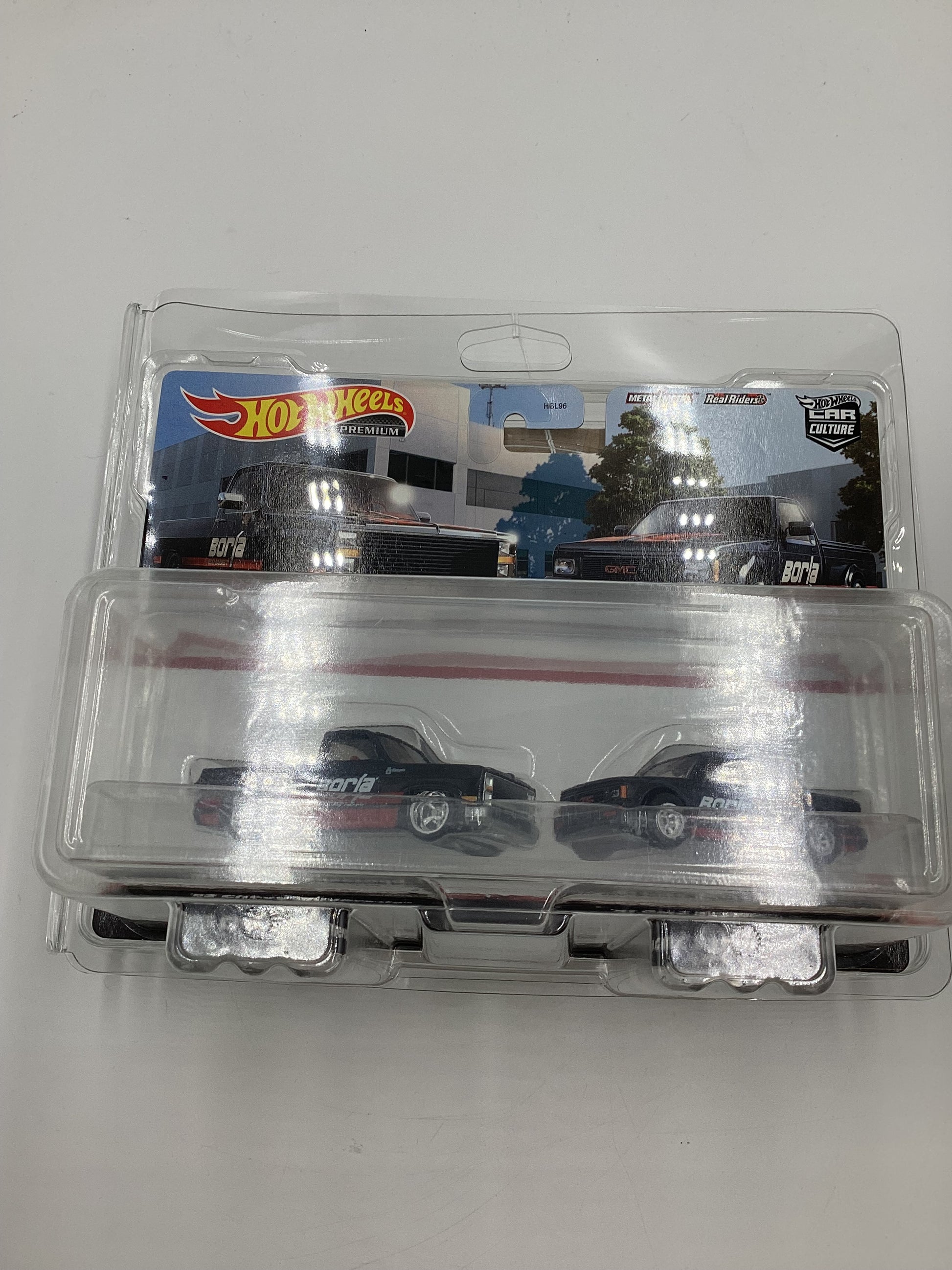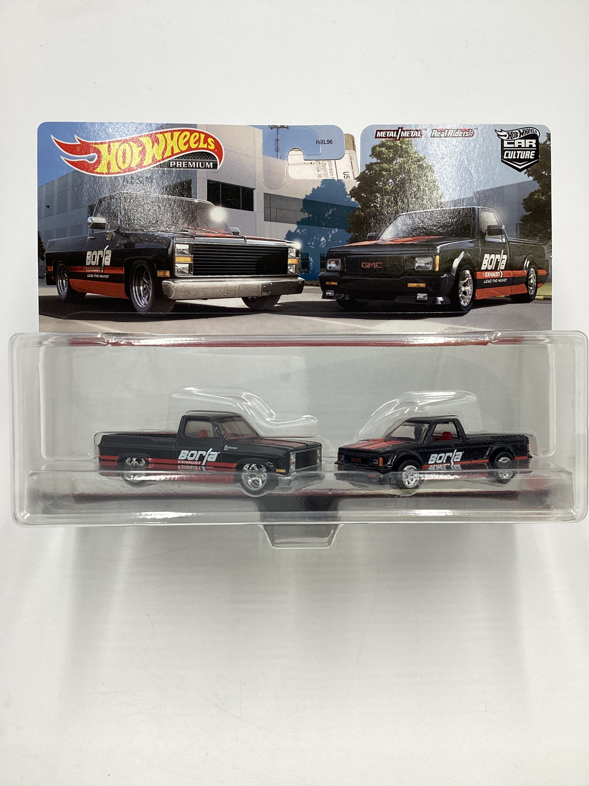 Hot Wheels Premium Target 2 Pack Borla 83 Chevy Silverado 91 GMC Syclone W/Protector